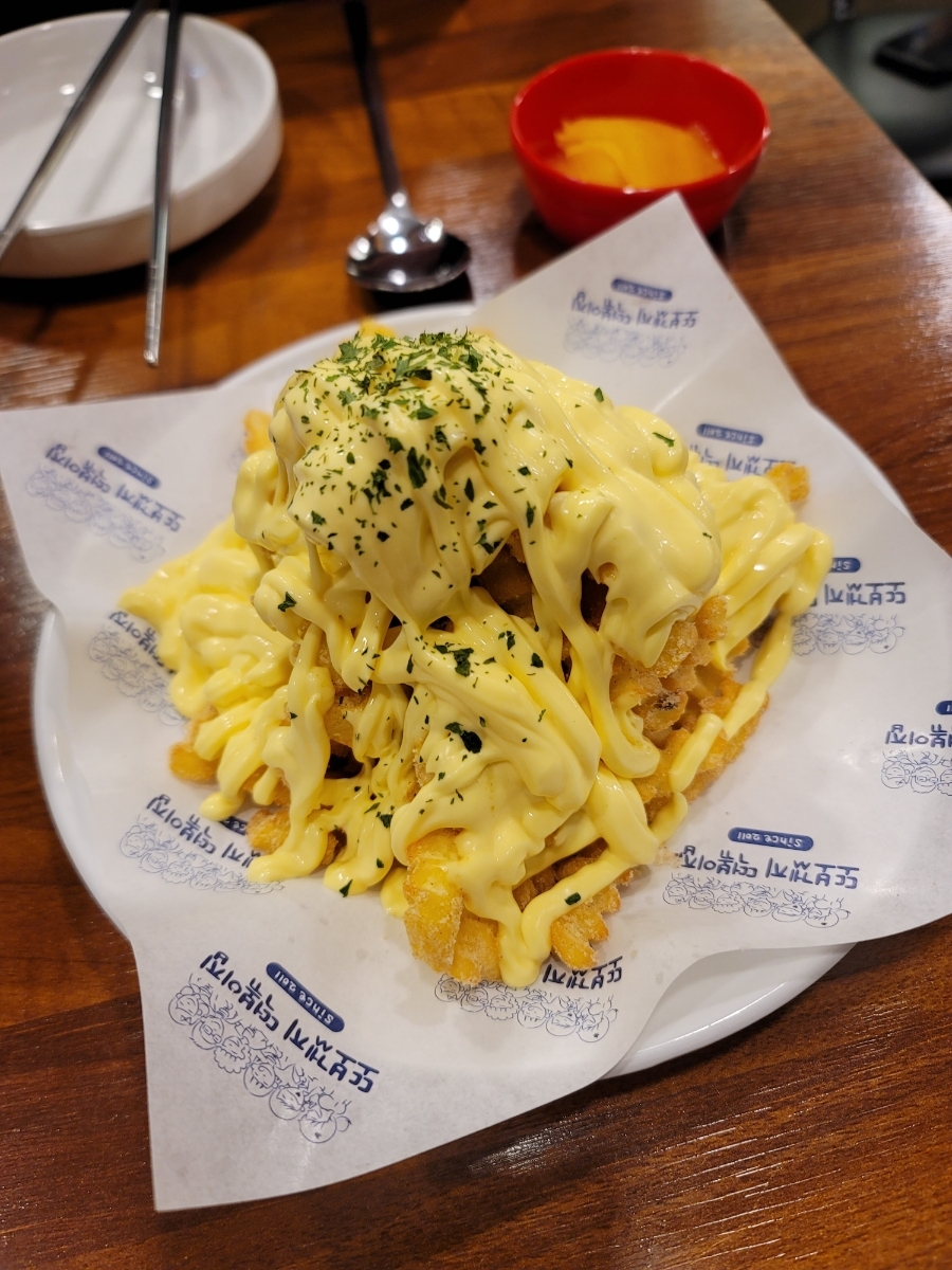 We also ordered cheese to be put on top of the tteokbokki to ease the spice.