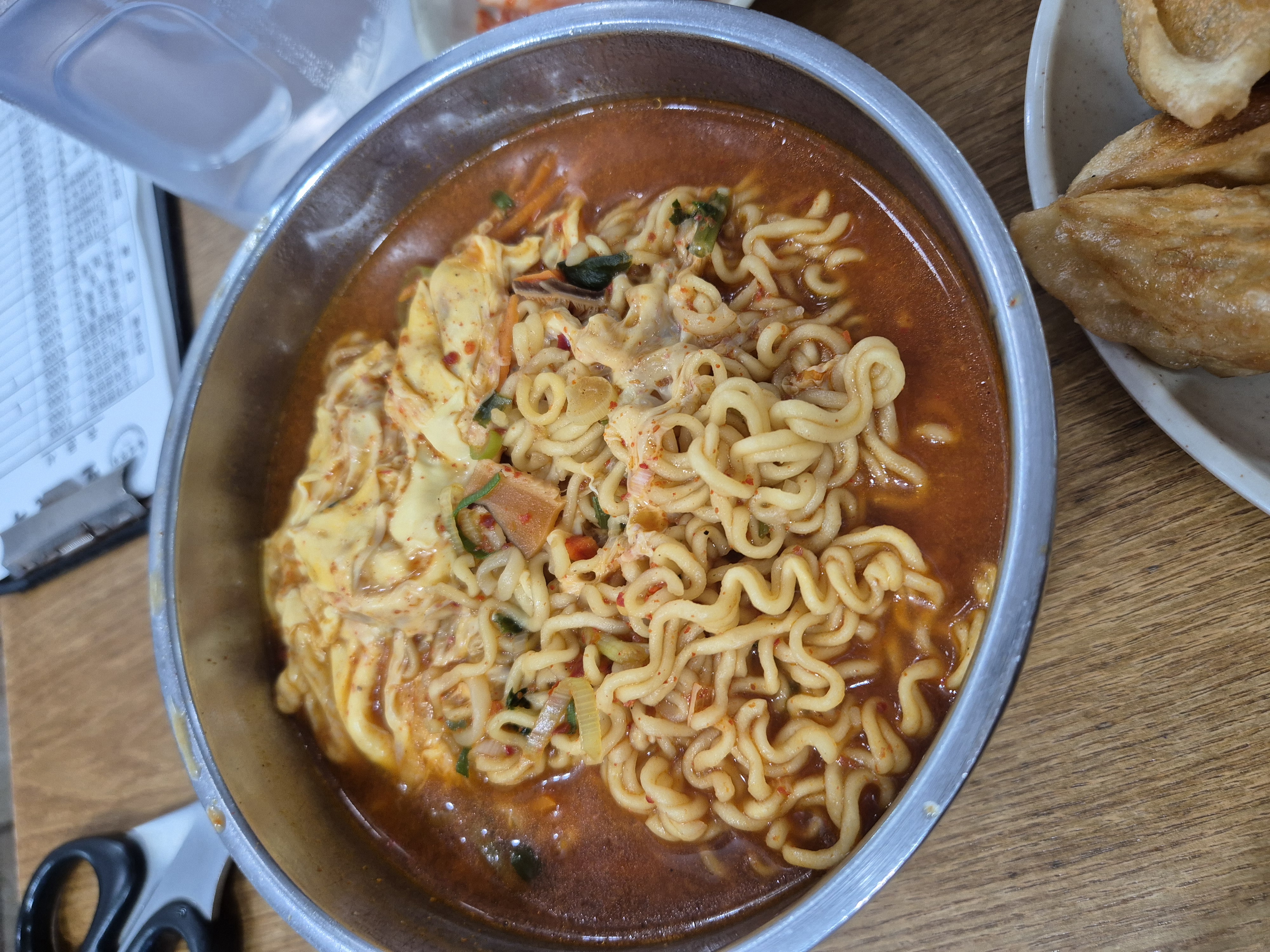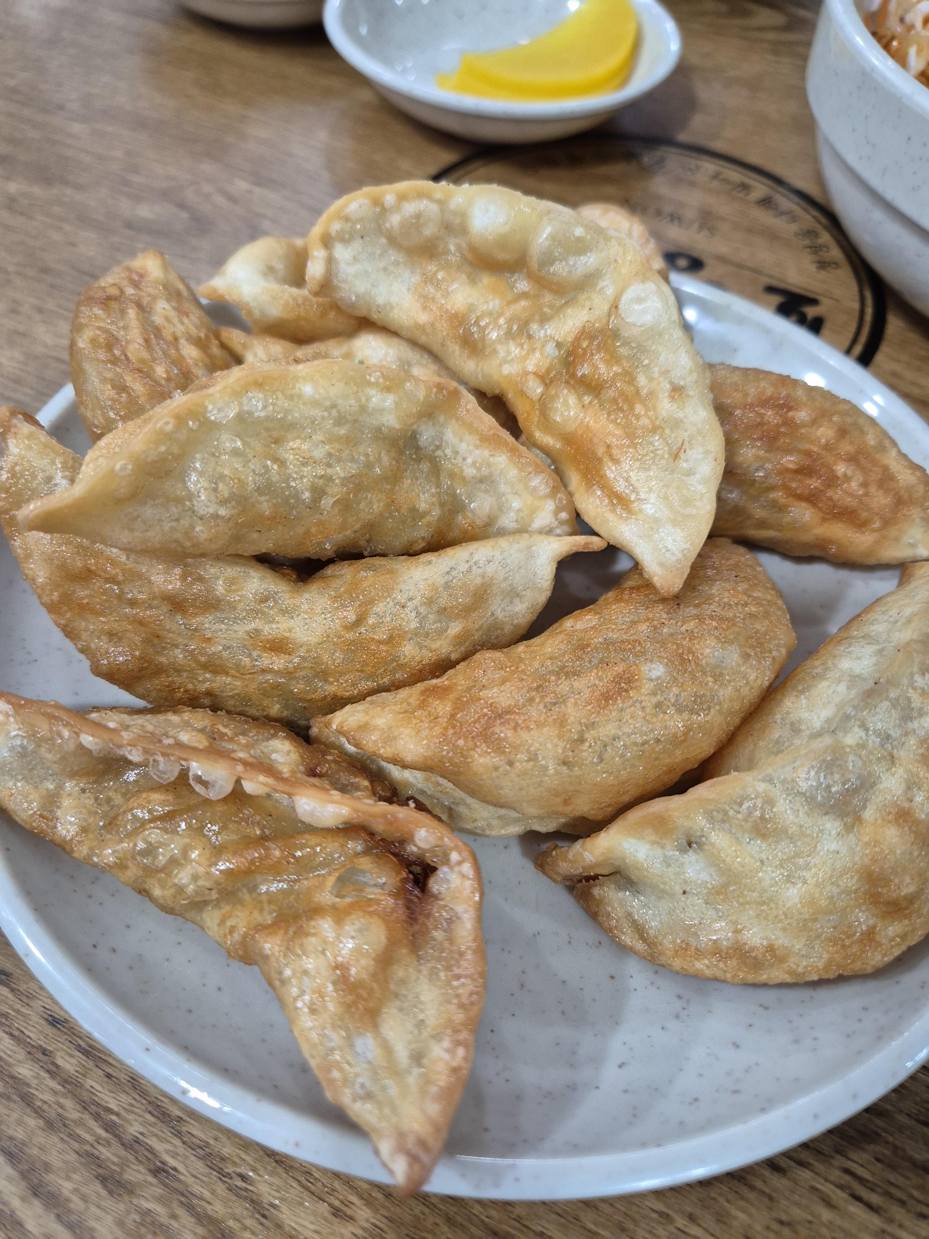 Fried dumplings were great with ramyeon, but the spicy chewy noodles were so so for us.