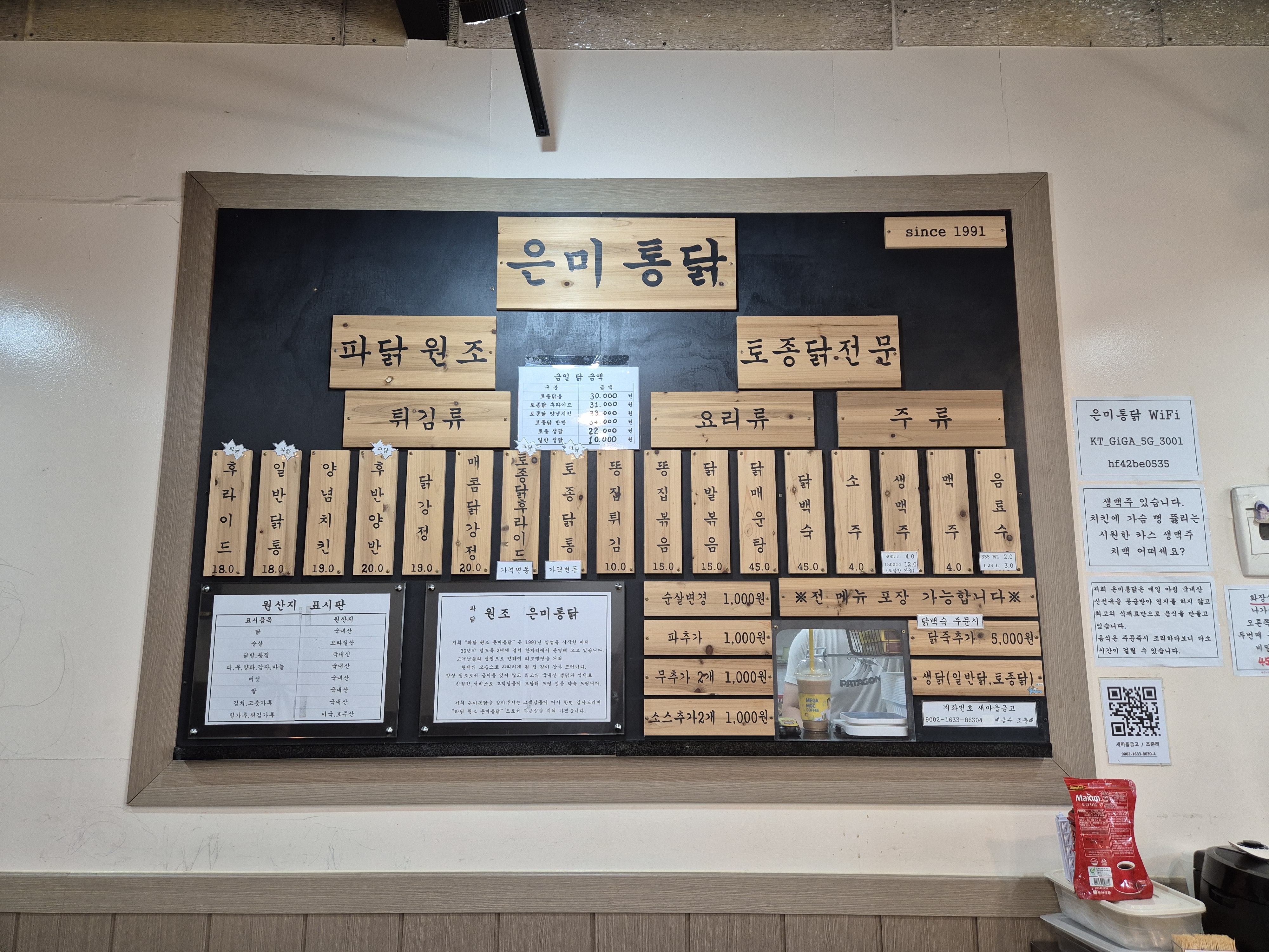 Hi, ya'll~ The place I would like to share today is called, The picture above is the menu of the Eunmi Chicken. My date and I visited Eunmi Chicken to try the Fried Jumbo Chicken with green onions! When we saw the chicken for real, it was really huge!I tried to take the picture to show how big the chicken leg was, but it's quite disappointing the chicken leg in the picture are inadequate to e..